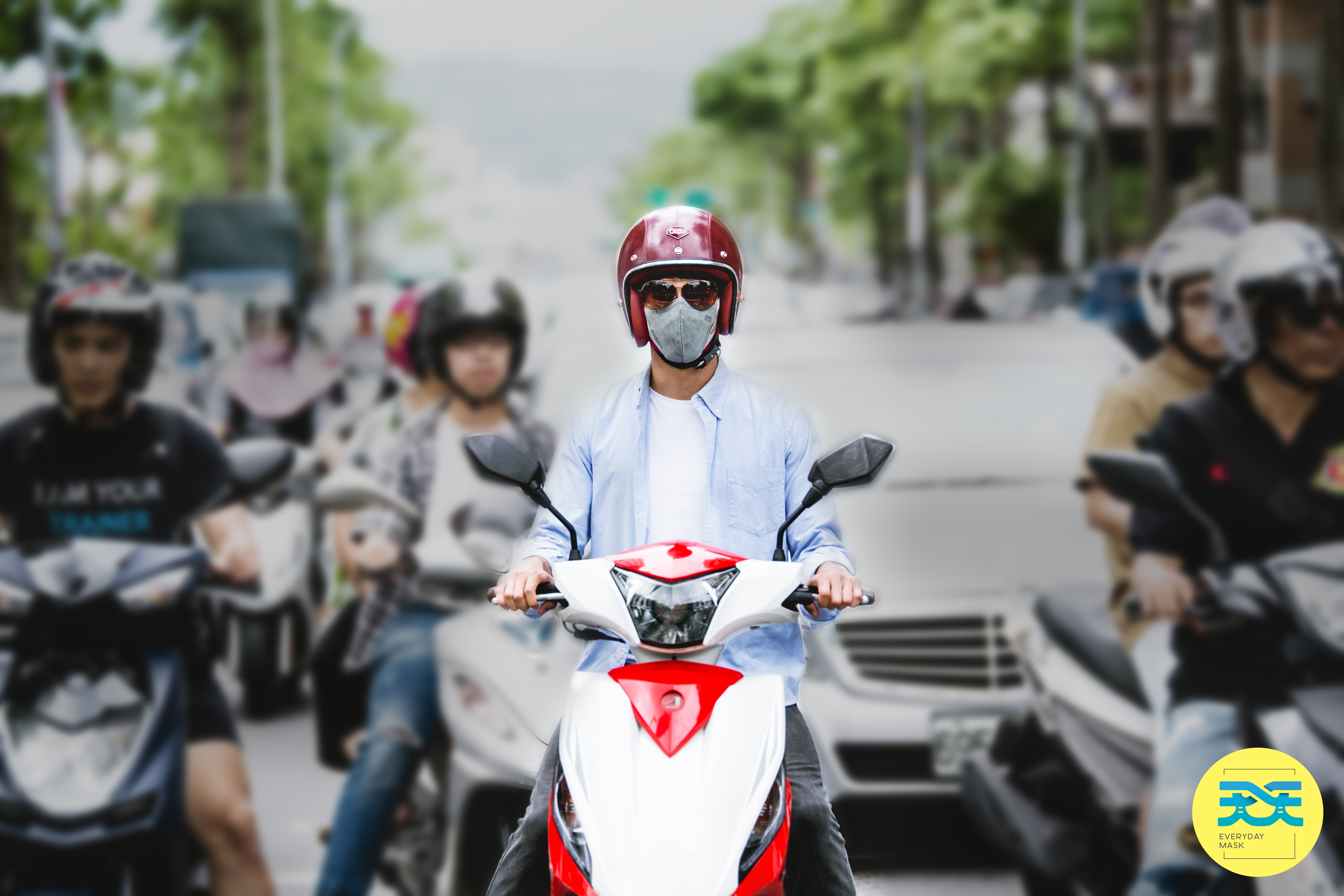 環保署107年最新數據,機車族暴露在PM2.5的平均濃度是32.1μg/m3,直逼橘色警戒,瞬間濃度甚至達紫色警戒,是開車的近 5倍! 「天天機車族專用口罩」使用空氣清淨機等級的HEPA級濾材,加上活性碳層與3D立體造型,有效隔絕汽機車排放的廢氣髒汙!