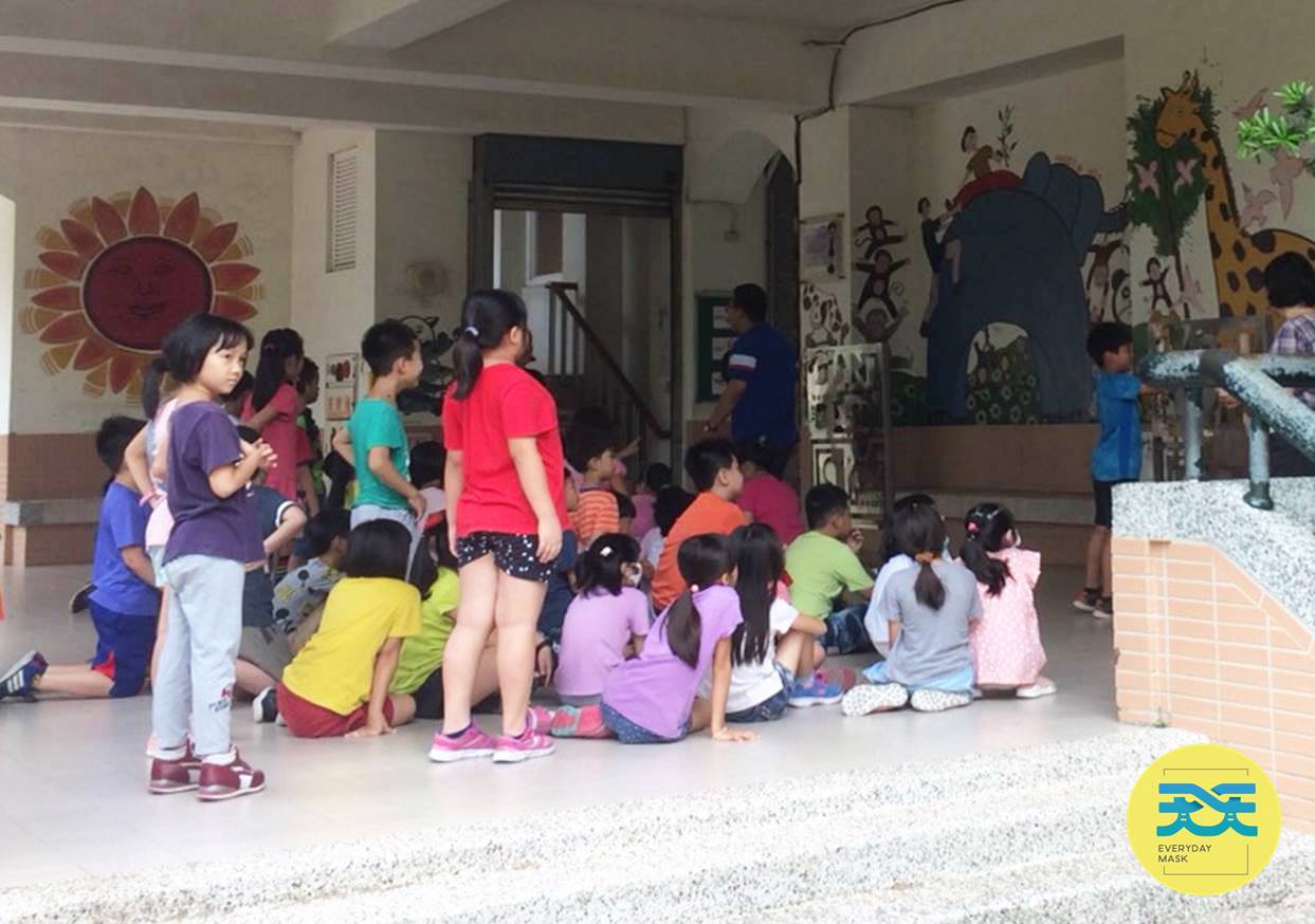 壽天國小隔壁是寺廟,有時會有燃燒金銀紙的廢氣,加上又鄰近焚化爐。面對這樣的空汙環境,只能請學生戴上口罩。