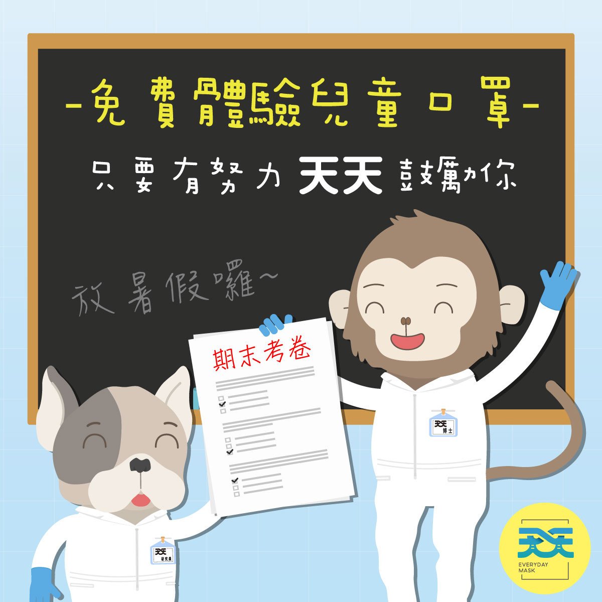 期末考結束,孩子們辛苦了 上傳寶貝期末考卷,免費體驗兒童口罩乙包 <兌換辦法> 1.於本則下方 V 上傳寶貝國小本學期期末考卷(科目不限) V 留下『我要守護寶貝呼吸健康』 2.適用對象:限國小學童申請,限申請一次 3.限量100名,免費贈送兒童防菌口罩或兒童加強口罩(隨機贈送) 4.口罩免費限量、免運體驗,申請要快! 更多天天防護口罩商品>>https://www.8vd.com.tw/products/113/1.htm
