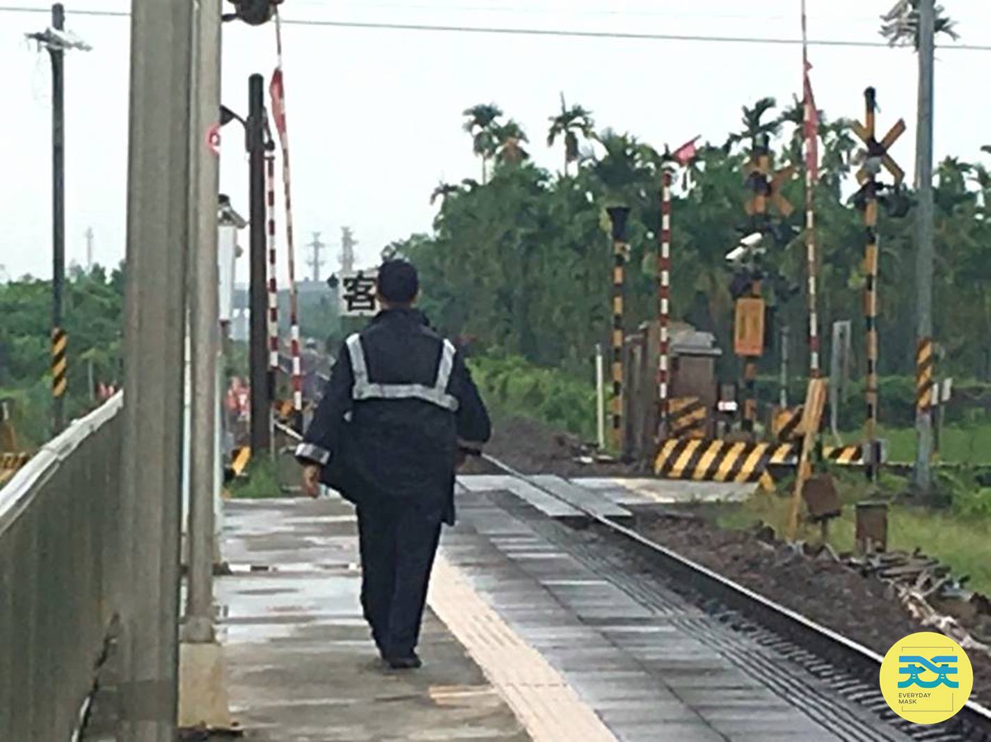 在崁頂這個無人小站,巧遇這位家住高雄楠梓工業區附近、每天通勤到屏東工作的鐵路警察。問完下一班火車時間、方向後,我們自然而來聊起當地空氣品質、PM2.5等話題。